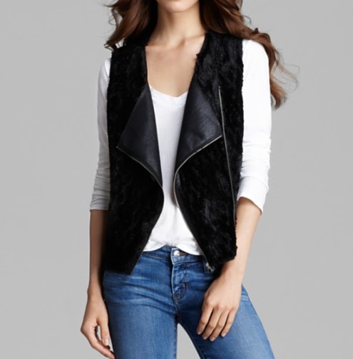- Vests. For our mild winters, a sleeveless vest makes a nice topper too. I recently bought a very cool moto style vest in olive green. I wouldn’t mind another vest for the season, maybe a faux fur?: