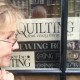 This is the Margaret Dress, my new favorite Karina dress (every time I try one it becomes my new favorite). This one made my husband’s eyes pop – he doesn’t always notice what I wear – and I got a “Wow!” The Margaret has a modest crossover neck that flatters and allows for a cool necklace (mine was thrifted). The Margaret is slightly longer hem than many Karinas, and I love that – so graceful with the swirly cut of the skirt. Love this new green and blue print too; it reminds me of some deco designs.