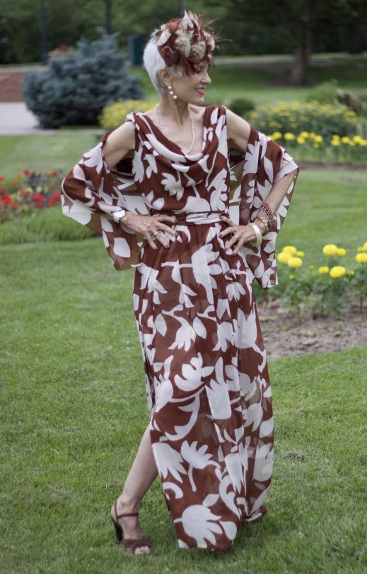 We wear a vintage Valentino whenever the mood strikes: Judith of Style Crone is wearing a Valentino dress and scarf she found for one dollar (yes) at a yard sale. You don’t have to wait for a special event to bring out your fabulous vintage finds – wear them any day, and if you have a magnificent hat like Judith’s, all the better.