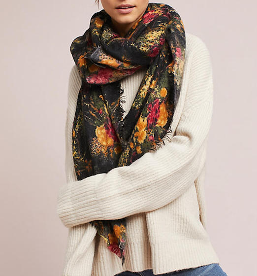- A magnificent scarf or wrap with your best colors, that you can toss on any day for instant style. Like this one for the cooler months, that can be worn around the neck, as a wrap, or to snuggle on the couch with a good mystery.